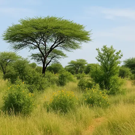 Les principales formations végétales sont la savane arbustive et la steppe. On retrouve de nombreuses espèces d’arbres: : le karité (Butyrospermum parkii), le néré (Parkia biglobosa), le kapokier rouge (Bombax Costatum), le tamarinier (Tamarindus Indica), le baobab (Adansonia digitata), le dattier du sahel (Balanites aegyptiaca), le jujubier (ziziphus manitiaca), le Manguier (Mangifera indica), le Nimier (Azadirachta indica), l’Eucalyptus (Eucalyptus camadulensis) et l’acacia (Cassia siamcre).